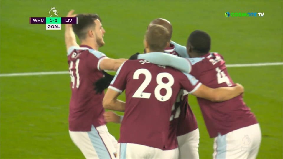 Στο 4ο μόλις λεπτό ο Φορνάλς άνοιξε το σκορ για τη Γουέστ Χαμ με απ’ ευθείας εκτέλεση κόρνερ και με τον Άλισον να κάνει τραγική γκάφα. Το γκολ μέτρησε μετά από χρήση του VAR καθώς ο Άλισον σηκώθηκε μαζί με τον Ογκμπόνα αλλά το διαιτητικό τιμ έκρινε πως ήταν κανονικό