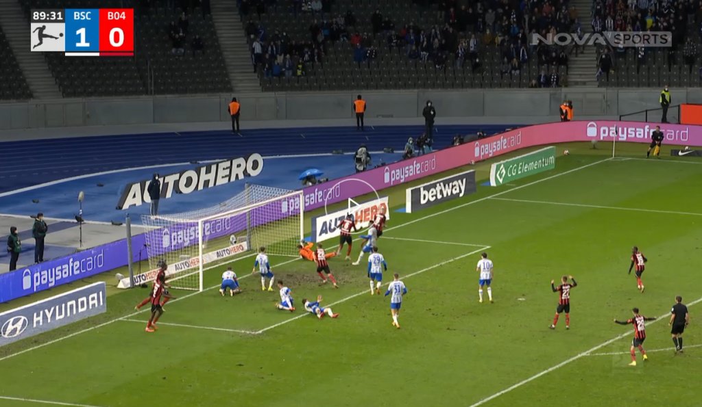 Η Χέρτα Βερολίνου βρισκόταν μια ανάσα από το να επιστρέψει στις επιτυχίες, αλλά το γκολ του Άντριχ έσωσε τον βαθμό για τη Μπάγερ Λεβερκούζεν, με τις δυο ομάδες να μένουν στο 1-1 στο "Olympiastadion". Μέτριο ήταν το παιχνίδι στο Ολυμπιακό Στάδιο του Βερολίνου, με την Λεβερκούζεν να έχει την μπάλα και να πατάει 2-3 φορές επικίνδυνα την περιοχή του Τσβόλοου, χωρίς όμως τη μεγάλη φάση. Το 1-0 έγραψε ο Γιόβετιτς λίγο πριν οτ τέλος του ημιχρόνου με ωραίο γύρισμα στην περιοχή. Στο δεύτερο ημίχρονο η Χέρτα προσπάθησε να προστατεύσει το υπέρ της σκορ και το έκανε με επιτυχία κυρίως απέναντι στον Ντεμίρμπαϊ, που είχε 3 τελικές. Δεν τα κατάφερε όμως στη φάση του ενενηκοστού λεπτού όταν μετά από κόντρες ο Άντριχ βρέθηκε μόνος του και ισοφάρισε.
