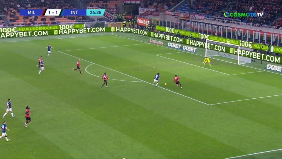 Στο 25’ ο Νταρμιάν άδειασε με ένα κοντρόλ τον Μπάλο Τουρέ που γύρισε και τον ανέτρεψε με τον Ντόβερι να δίνει το πέναλτι. Ο Λαουτάρο το εκτέλεσε αλλά ο Ταταρουσάνου έπεσε στη γωνία του κι έσωσε την ομάδα του.