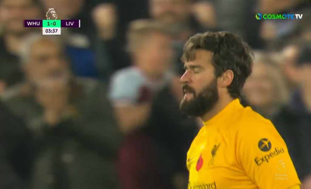 Το αήττητο 25 αγώνων της Λίβερπουλ τερματίστηκε στο Λονδίνο, με την Γουέστ Χαμ να επικρατεί 3-2, ανοίγοντας το σκορ στο στο 4ο λεπτό. Σε εκτέλεση κόρνερ, ο Άλισον έκανε έξοδο, δεν μπλόκαρε την μπάλα, που κατέληξε στα δίχτυα με τους ποδοσφαιριστές της Λίβερπουλ να φωνάζουν για φάουλ πάνω στον Βραζιλιάνο τερματοφύλακα.