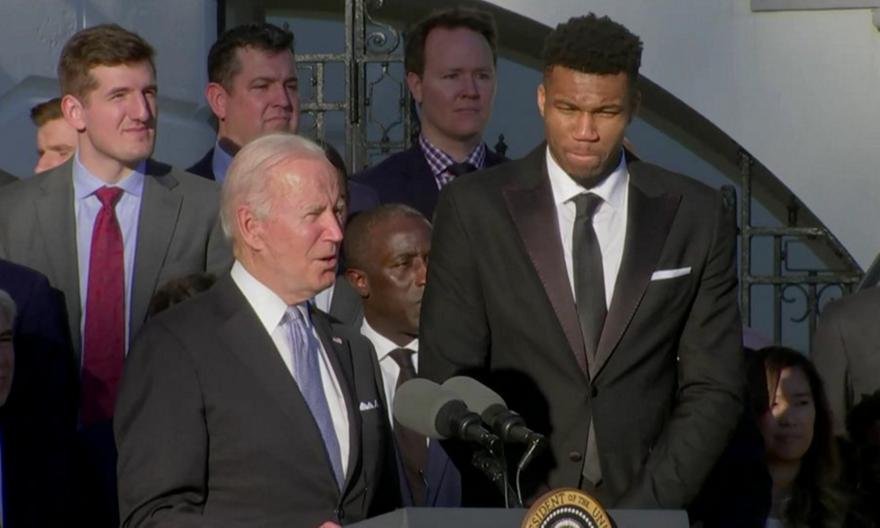 Θυμίζουμε πως στον Λευκό Οίκο βρέθηκαν οι Μπακς για την βράβευση τους μετά την περσινή κατάκτηση του τιτλου. Ο Πρόεδρος των Η.Π.Α. αφού υποδέχθηκε τα «ελάφια» μίλησε μπροστά στις κάμερες παρέα με τον Γιάννη Αντετοκούνμπο. Ο Τζο Μπάιντεν συνεχάρη τόσο την ομάδα του Μιλγουόκι, όσο και τον Έλληνα super star για την κατάκτηση του τίτλου.