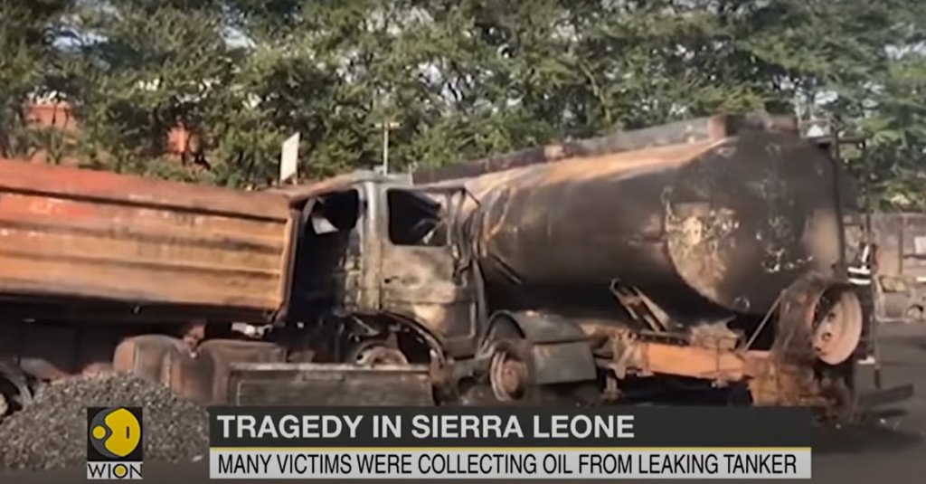 Η τραγωδία εκτυλίχθηκε την Παρασκευή, όταν βυτιοφόρο συγκρούστηκε με άλλο βαρύ όχημα σε πρατήριο καυσίμων σε βιομηχανική ζώνη της πρωτεύουσας Φριτάουν, με αποτέλεσμα να εκραγεί και να ξεσπάσει πυρκαγιά.