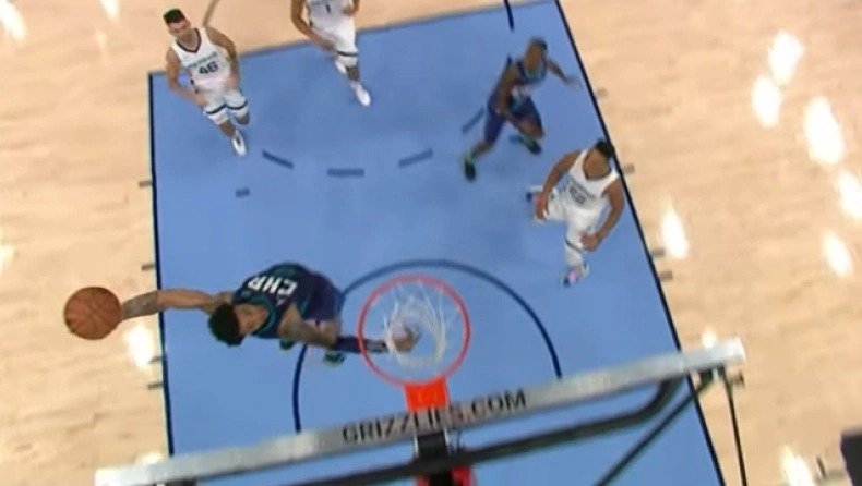 Ο φόργουορντ των Χόρνετς πήρε μια δύσκολη πάσα και κάρφωσε την μπάλα στο καλάθι των Γκρίζλις, στην κορυφαία φάση από τους αγώνες που έγιναν τα ξημερώματα στο NBA