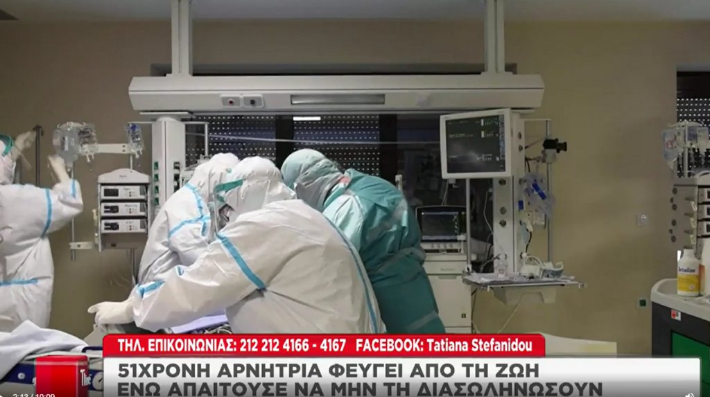 Η γυναίκα ήταν αρνήτρια του κορωνοϊού και του εμβολίου και όταν οι γιατροί τής ανακοίνωσαν ότι πρέπει να τη διασωληνώσουν, σύμφωνα με την εκπομπή «ΤLIVE» του Alpha, επικοινώνησε μέσω διαδικτύου με επόπτη δημόσιας υγείας που βρίσκεται σε αναστολή και εκείνος την προέτρεψε να μη διασωληνωθεί και να καλέσει την αστυνομία.
