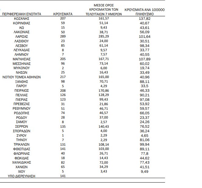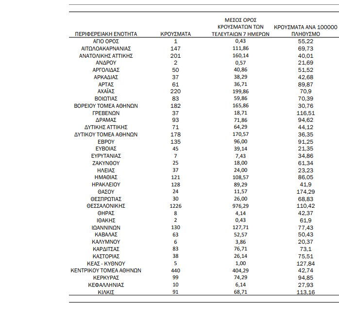 Αναλυτικότερα τα κρούσματα στις περιφερειακές ενότητες που ανήκουν στην Αττική: