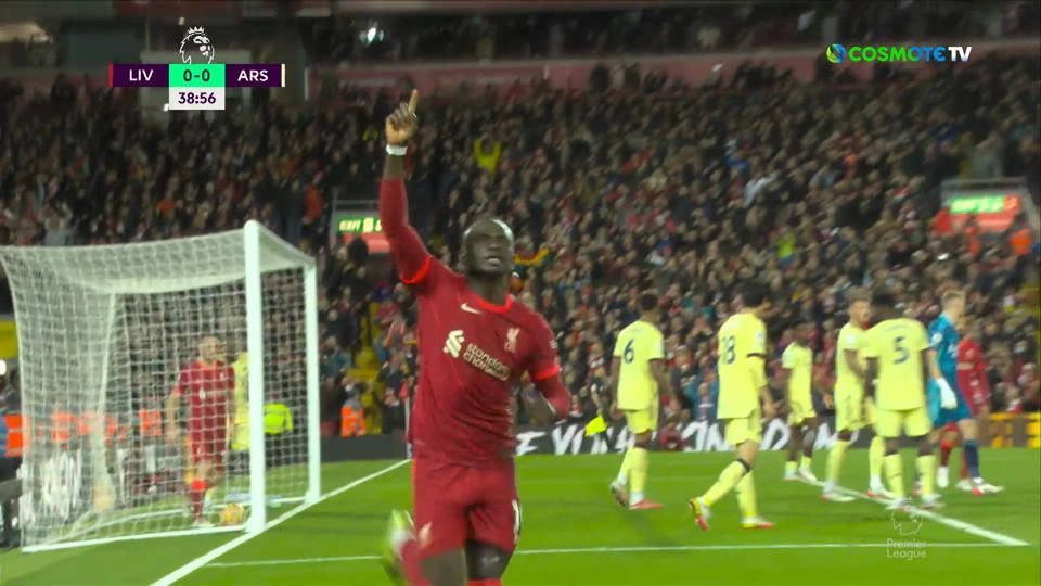 Στο 39’ ο Άρνολντ εκτέλεσε το φάουλ από δεξιά και ο Μανέ με κεφαλιά στο πίσω δοκάρι έκανε το 1-0.