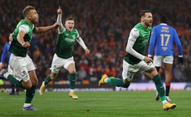 Εφιαλτικό το πρώτο μέρος για τη Ρέιντζερς καθώς στο 9ο μόλις λεπτό ο Μπόιλ άνοιξε το σκορ για τη Χιμπέρνιαν με κοντινό πλασέ μετά από εκτέλεση κόρνερ. Μάλιστα στο 21’ ο Νίσμπετ έβγαλε όμορφα στον Μπόιλ που έκανε το 0-2 με όμορφο σουτ και στο 38΄ο Μπόιλ με πέναλτι ολοκλήρωσε το χατ τρικ του για το 0-3.