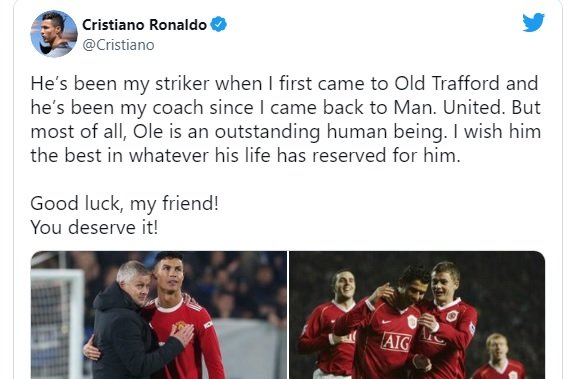 Το δικό του «αντίο» στον Όλε Γκούναρ Σόλσκιερ θέλησε να πει ο Κριστιάνο Ρονάλντο. Σε μήνυμα του στο twitter ανέφερε: