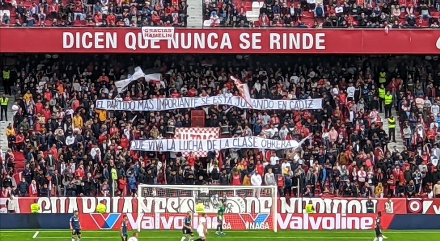 Η απόσταση ανάμεσα σε Σεβίλλη και Κάντιθ είναι 99 χιλιόμετρα. Αλλά οι οπαδοί της Σεβίλλης δεν μπορούσαν να μείνουν θεατές στον αγώνα χιλιάδων εργατών που παλεύουν να διασώσουν την αξιοπρέπειά τους.