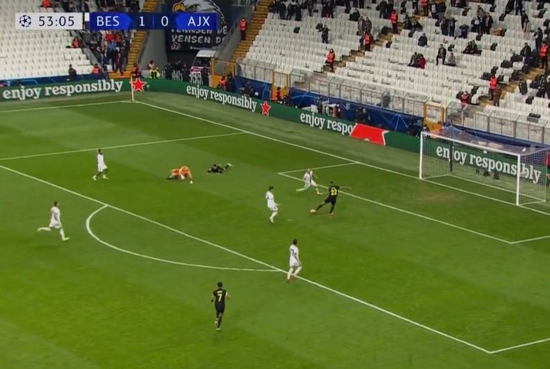 Στο 51’ μετά από κάθετη του Ταλιάφικο, ο Τάντιτς έφυγε στην πλάτη της άμυνας της Μπεσίκτας και από αριστερά γύρισε στον Αλέ που πλάσαρε σε κενό τέρμα για το 1-1.