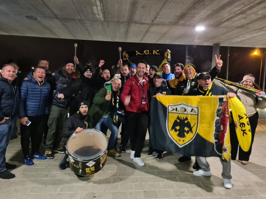 Η ομάδα χάντμπολ της ΑΕΚ σε ακόμα ένα δύσκολο εκτός ευρωπαϊκό παιχνίδι θα έχει την στήριξη των οπαδών της. Μάλιστα, αρκετοί ήταν οι «κιτρινόμαυροι» οι οποίοι βρέθηκαν έξω από το γήπεδο και με συνθήματα θέλησαν να δώσουν ώθηση στους πάικτες του Δημήτρη Δημητρούλια πριν το ματς με την Καντέτεν.