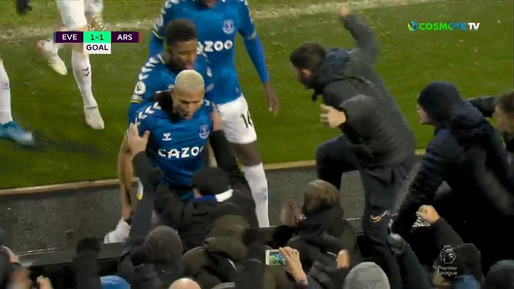 Τελικά στο 79ο λεπτό ο Γκρέι έπιασε φοβερό σουτ έξω από την περιοχή με την μπάλα να βρίσκει στο δοκάρι και στην επαναφορά ο Ριτσάρλισον με κεφαλιά έκανε το 1-1. Στο 84’ μετά από σέντρα από τα δεξιά, ο Ενκετιά πήρε την κεφαλιά μέσα από τη μικρή περιοχή αλλά έστειλε την μπάλα στο δοκάρι του Πίκφορντ.