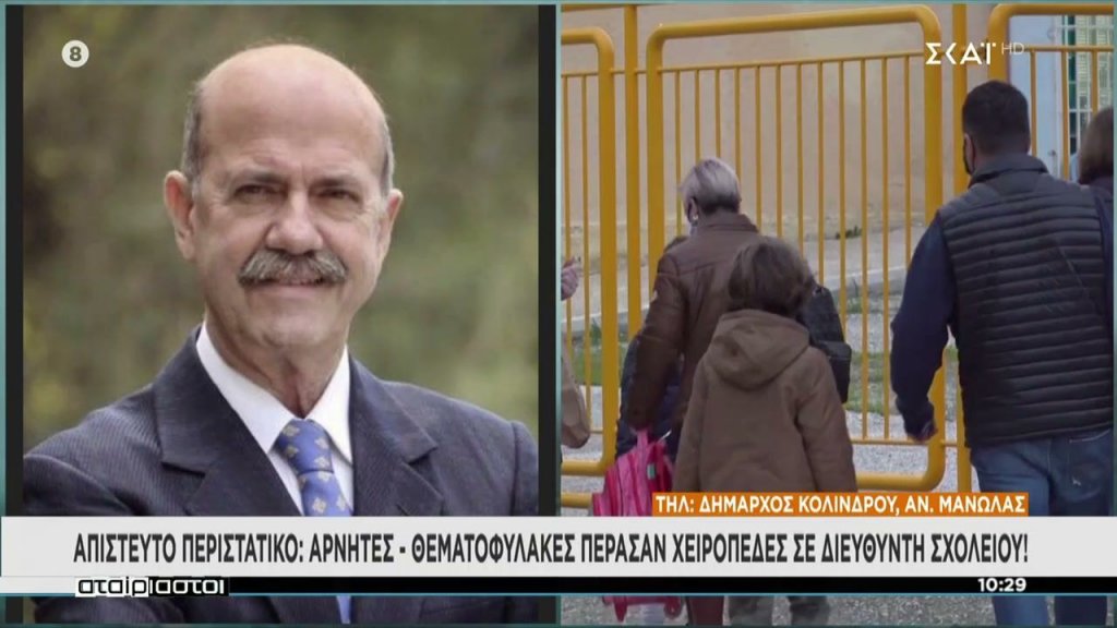 Όπως δήλωσε στον ΣΚΑΪ και την εκπομπή Αταίριαστοι ο δήμαρχος Πύδνας Κολινδρού, Μανώλας, μια ομάδα αγνώστων πήγαν στο γυμνάσιο Αιγινίου και πέρασαν χειροπέδες στον διευθυντή, τον έβαλαν σε ένα αυτοκίνητο και τον πήγαν στο αστυνομικό τμήμα.