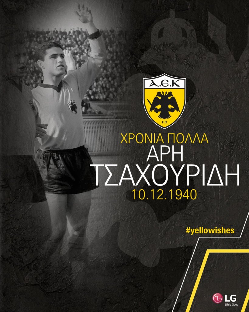 Γενέθλια έχει σήμερα ο Αρης Τσαχουρίδης, παλαίμαχος ποδοσφαιριστής και ένας από τους πιο πιστούς στρατιώτες της ομάδας μας. Πρωταθλητής (1963) και Κυπελλούχος (1964) με την ΑΕΚ, μέλος για πολλά χρόνια του προπονητικού επιτελείου της ομάδας μας.