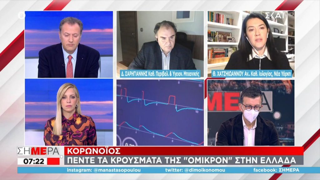 Από την πλευρά του, ο καθηγητής Περιβαλλοντικής και Υγειονομικής Μηχανικής στο ΑΠΘ, Δημοσθένης Σαρηγιάννης, σημείωσε ότι στην Ελλάδα θα συναντάμε πολύ πιο έντονα τη μετάλλαξη Όμικρον από τα μέσα Ιανουαρίου και θα είναι το βασικό πρόβλημα τον φετινό χειμώνα. «Με τα δεδομένα που έχουμε μέχρι στιγμής από την επιστημονική κοινότητα, οι δικές μας εκτιμήσεις δείχνουν ότι θα τη συναντάμε πιο πολύ από τα μέσα Ιανουαρίου και έχουμε τον χρόνο να προετοιμαστούμε κατάλληλα ώστε να μπορέσουμε να την αντιμετωπίσουμε αποτελεσματικά».