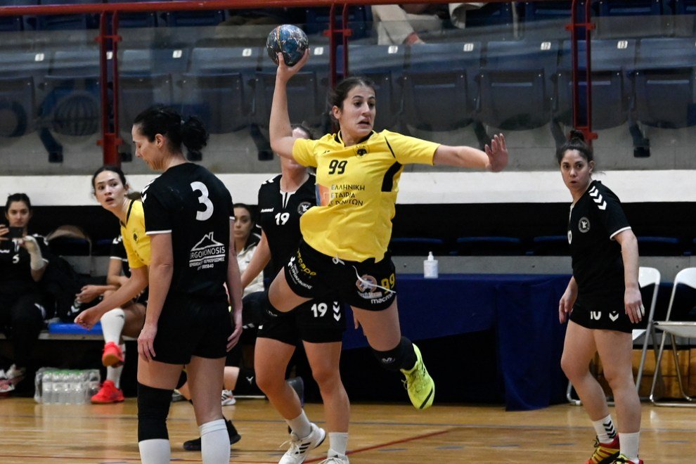 Τα κορίτσια του Κώστα Κότσιρα ξεκίνησαν εξαιρετικά το παιχνίδι, έχοντας πάρει προβάδισμα πέντε γκολ (5-0), ενώ στα μισά η διαφορά είχε ανέβει στα πέντε τέρματα (12-2). Οι «κιτρινόμαυρες» με την καλή τους άμυνα, αλλά και την εξαιρετική τους επιθετική λειτουργία διατηρούσαν την διαφορά ενώ πέντε λεπτά πριν το τέλος του πρώτου μέρους την αύξησαν (18-6). Το τέλος του πρώτου ημιχρόνου, βρήκε την ΑΕΚ να επικρατεί 23-8.