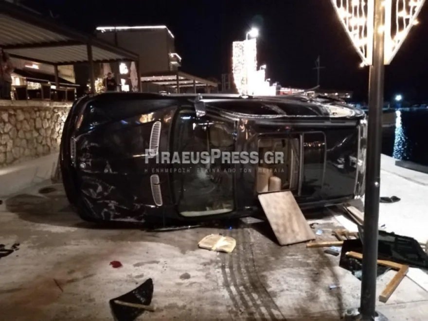 Αυτοκίνητο παρεκτράπη της πορείας του και αναποδογύρισε στον πεζόδρομο δίπλα στη θάλασσα του Μικρολίμανου.