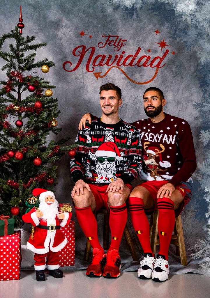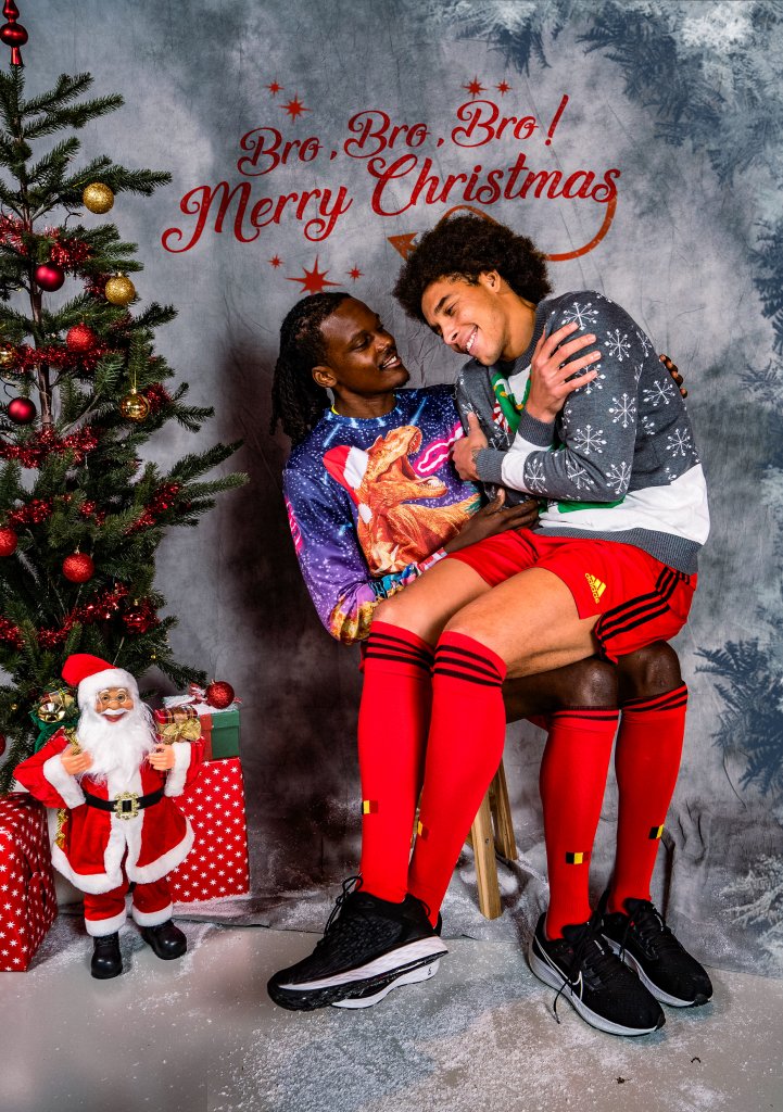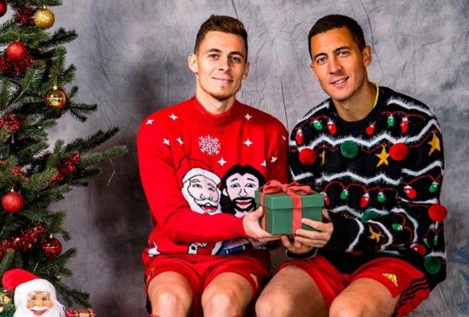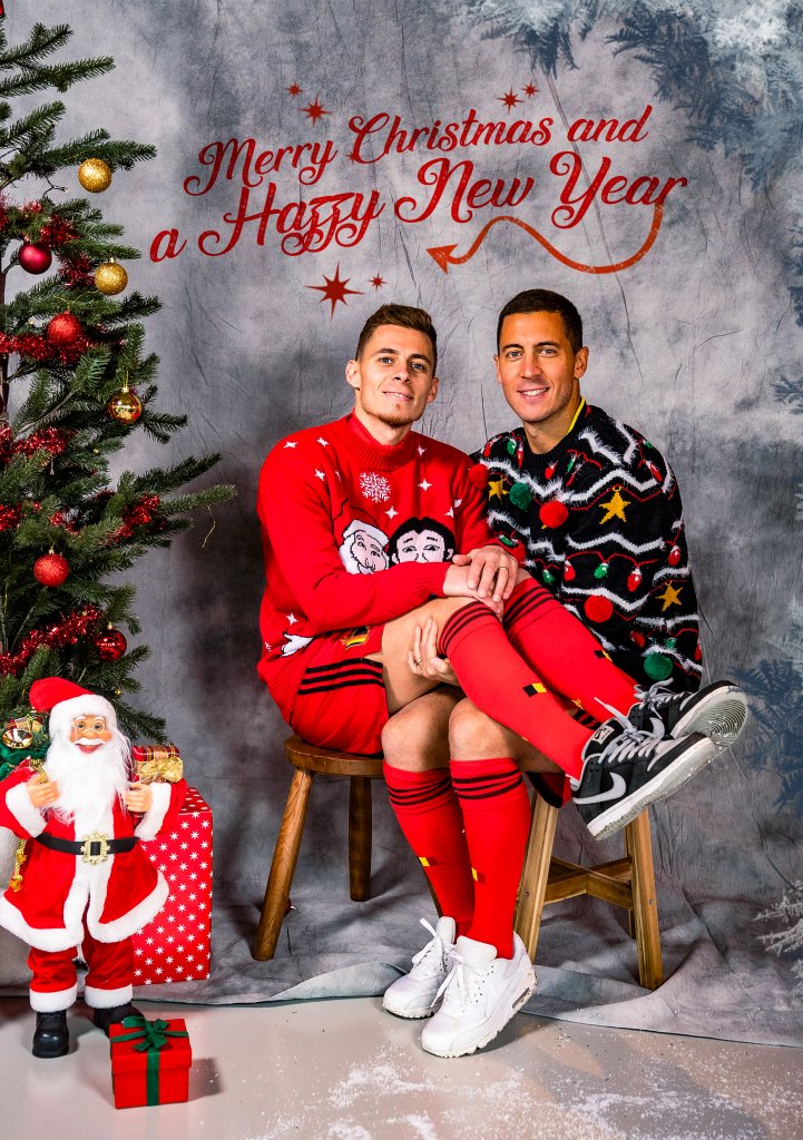 Παίκτες όπως τα αδέρφια Αζάρ, ο Ντε Μπρόινε και ο Βίτσελ, μεταξύ άλλων, πόζαραν δίπλα στο χριστουγεννιάτικο δέντρο με γιορτινά πουλόβερ, σορτσάκια και ποδοσφαιρικές κάλτσες σε δυάδες, με το αποτέλεσμα να είναι μαγευτικό.