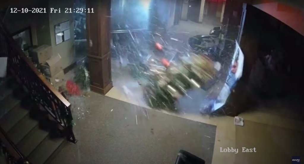 Το βίντεο προέρχεται από τις κάμερες κλειστού κυκλώματος μιας τράπεζας στο Μέιφιλντ του Κεντάκι και όπως φαίνεται η ένταση του αέρα ήταν τόσο μεγάλη που ουσιαστική διέλυσε όλη την πρόσοψη του κτιρίου σπάζοντας όλα τα τζάμια. Ευτυχώς μέσα στο κατάστημα δεν υπήρχαν άνθρωποι.