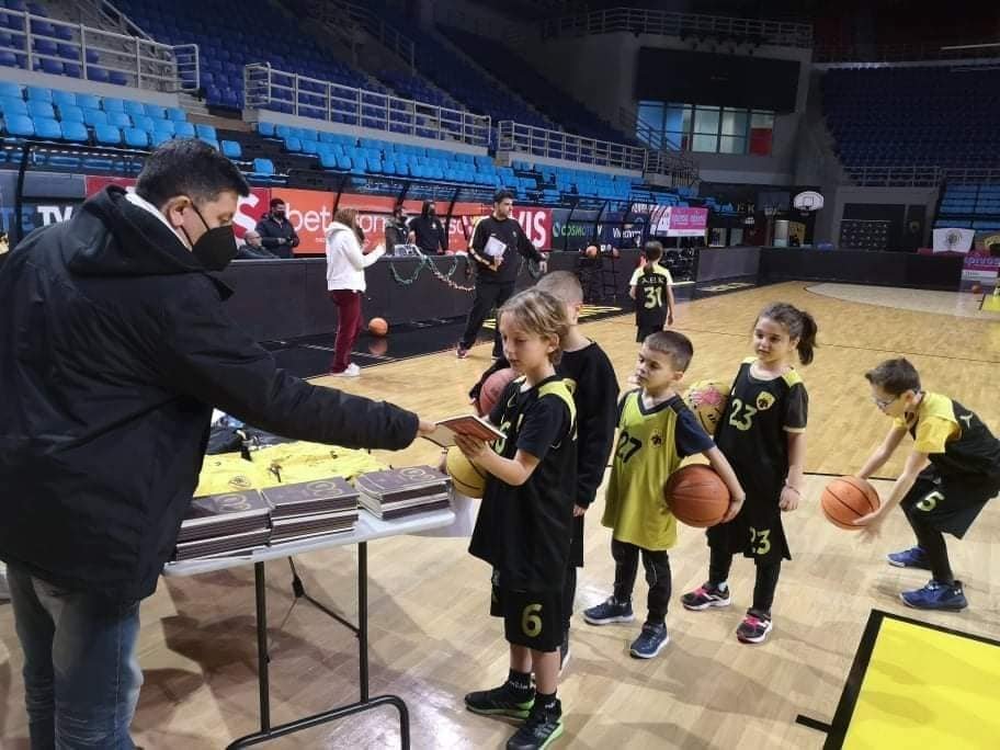 Το βιβλίο διένειμε στα Αετόπουλα, ο Διευθυντής Επικοινωνίας της ΑΕΚ BC, και τέως Γενικός Διευθυντής της ΑΕΚ ΒC ACADEMY – DRAGAN SAKOTA, Γιώργος Νικολάου, αλλά με την ιδιότητα του Γραμματέως της Λέσχης. Ο κ. Νικολάου απηύθυνε χαιρετισμό εκπροσωπώντας (και) την Πρόεδρο της Λέσχης, κα. Χριστίνα Σούκερη-Παπασταμάτη, η οποία εμπνεύστηκε την ιστορική καταγραφή της έκδοσης.