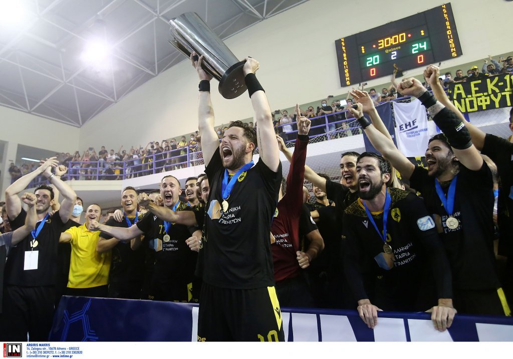 «Ο πρόεδρος της ΟΧΕ, Κώστας Γκαντής, ο αντιπρόεδρος της ΕΟΕ, Στέλιος Αγγελούδης και το Διοικητικό Συμβούλιο της Ομοσπονδίας Χειροσφαίρισης Ελλάδος, συγχαίρουν την ΑΕΚ για την ανάδειξή της στις τρεις κορυφαίες ομάδες της χώρας από τον Πανελλήνιο Σύνδεσμο Αθλητικού Τύπου για το 2021.