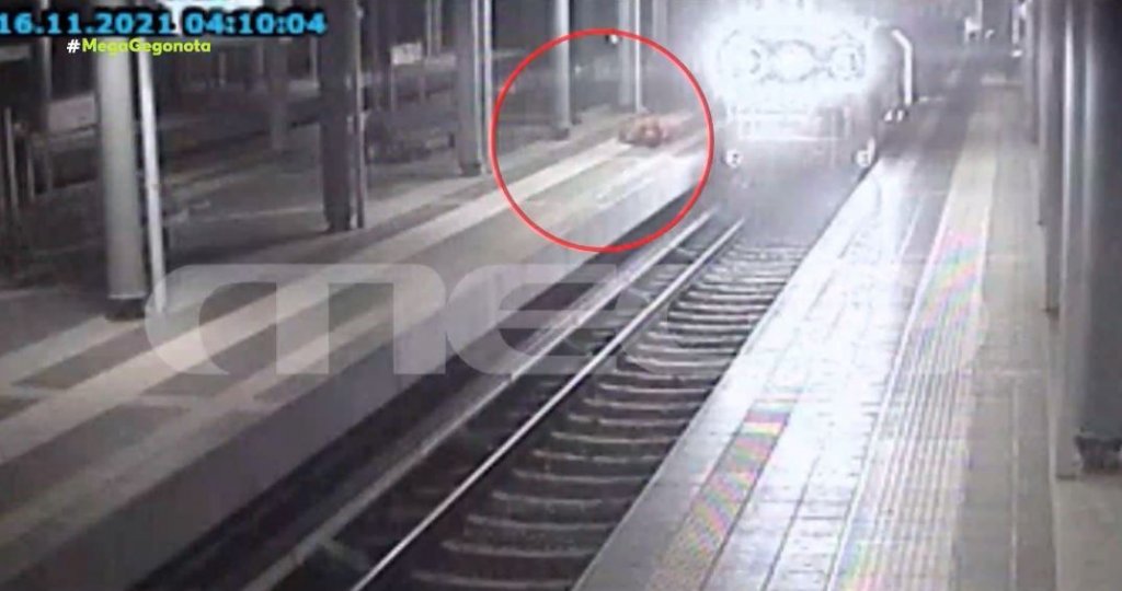 Στο βίντεο του MEGA διακρίνονται εργάτες, σε μια δραματική προσπάθεια να σωθούν, να πηδούν από τον συρμό. Ο ένας μάλιστα πέφτει μέσα στις γραμμές με το κεφάλι και τελικά τραυματίζεται. Ενας ακόμη φεύγει από την άλλη πλευρά και τον βοηθάει ένας άλλος που βρίσκεται στην αποβάθρα.