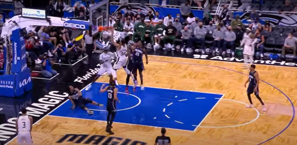 Ο Αντετοκούνμπο πήρε, στην κυριολεξία, παραμάζωμα τον Γκιλέσμπι των Μάτζικ και κάρφωσε την μπάλα, στην κορυφαία φάση των αγώνων που έγιναν τα ξημερώματα