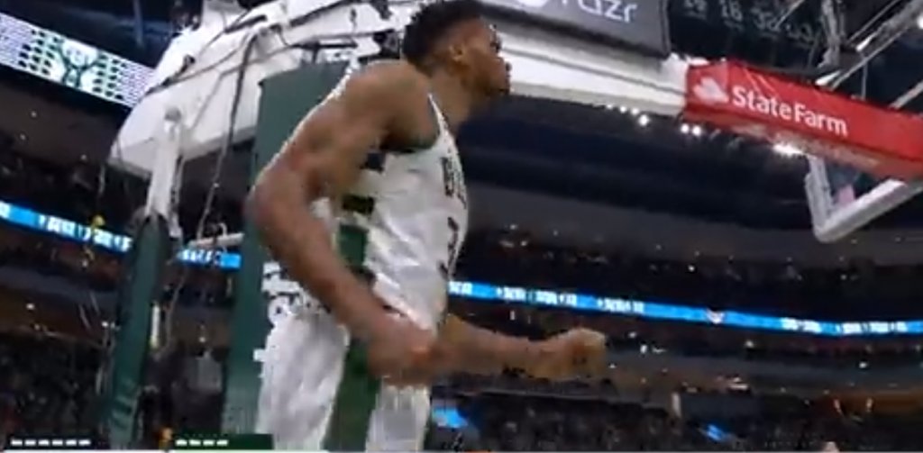 Με 4:55 για το φινάλε του ημιχρόνου, στο Μπακς-Πέλικανς, ο Τζάκσον Χέιζ των φιλοξενούμενων κάρφωσε την μπάλα στο καλάθι των Μπακς και πήρε και φάουλ από τον Γιάννη Αντετοκούνμπο.