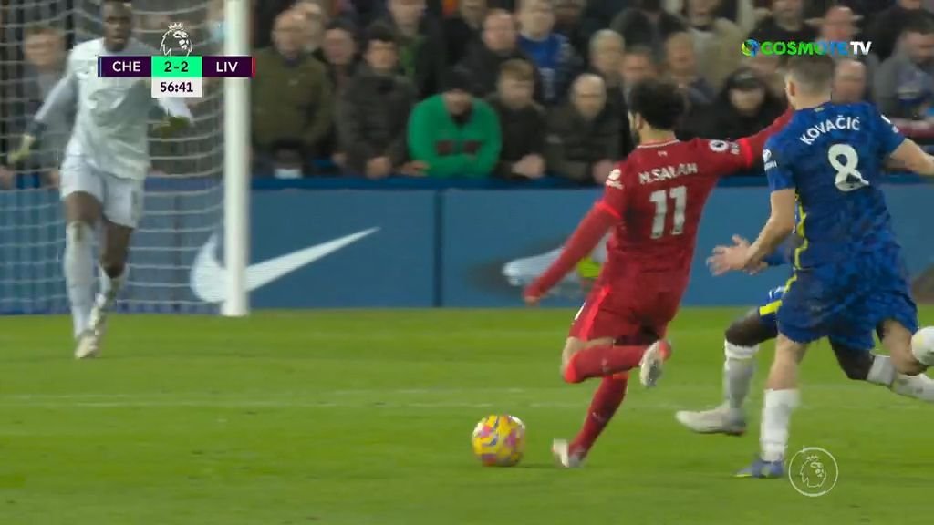 Ο Σαλάχ είδε τον Μεντί λίγο έξω από την εστία του και προσπάθησε να τον κρεμάσει με σουτ έξω από την περιοχή αλλά ο τερματοφύλακας της Τσέλσι πρόλαβε να διώξει εντυπωσιακά