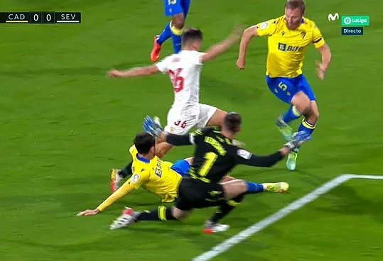 Η Σεβίλλη πέρασε με διπλό από την έδρα της Κάντιθ επικρατώντας με 1-0. Μετά από ένα κακό πρώτο μέρος οι φιλοξενούμενοι μπήκαν δυνατά στην επανάληψη και στο 58' άνοιξαν το σκορ με τον Οκάμπος που πλάσαρε από πλάγια θέση. Στο 64' ο σκόρερ της Σεβίλλης απείλησε με σουτ και το επόμενο λεπτό ο Λεντέσμα έβγαλε δύσκολα μια σέντρα σουτ του Ακούνια. Ο Χορδάν στο 83' απείλησε με σουτ που έστειλε την μπάλα μόλις άουτ. Δύο λεπτά μετά η Κάντιθ είχε ευκαιρία σε κεφαλιά του Αντόνε. Στο 90' ο Οκάμπος σκόραρε και πάλι αλλά το γκολ ακυρώθηκε για οφσάιντ.