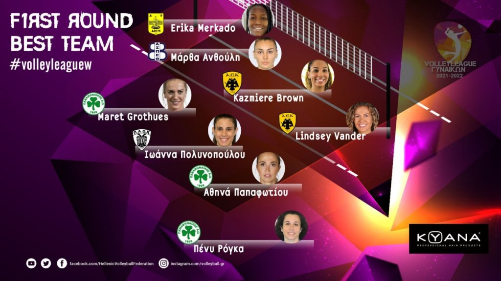 Στις κορυφαίες παίκτριες του Α’ γύρου της Volley League Γυναικών συμπεριλήφθηκαν οι αθλήτριες της ΑΕΚ, Λίντσεϊ Βάντερ και Καζ Μπράουν. Οι δύο αθλήτριες είχαν πολύ καλή απόδοση στον πρώτο γύρο και γι’ αυτό ψηφίστηκαν στην κορυφαία 7άδα, μετά την ψηφοφορία των 14 προπονητών της κατηγορίας.