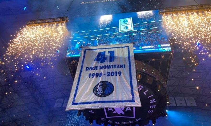 Μεγάλη βραδιά και τεράστια τιμή για τον Ντιρκ Νοβίτσκι, ο οποίος είδε τη φανέλα με το νούμερο 41, αυτή με την οποία αγωνίστηκε σε όλη του την καριέρα στο ΝΒΑ και στους Ντάλας Μάβερικς να αποσύρεται και να είναι πλέον στον… ουρανό του γηπέδου τους. Τα ξημερώματα οι Μαβς σε μια ιδιαίτερη τελετή απέσυραν την φανέλα του Ντιρκ Νοβίτσκι τιμώντας την προσφορά του στην ομάδα. Και δε σταματούν εδώ, καθώς όπως έκαναν γνωστό ετοιμάζεται και το άγαλμά του το οποίο θα τοποθετηθεί έξω από το γήπεδο.