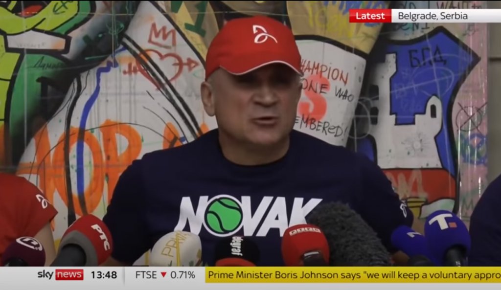 Επειδή αυτό σημαίνει πολλά για τον Νόβακ, τού δείχνει ότι δεν είναι μόνος. Αυτή τη στιγμή βρίσκεται στη φυλακή. Ο Ιησούς είχε επίσης ένα φοβερό πρόβλημα, του έκαναν τα πάντα, αλλά είναι ζωντανός μαζί μας. Το ίδιο είναι ζωντανός και ο Νόβακ μας, δεν μπορώ να τον γονατίσω, είναι η καρδιά της Σερβίας, ο ήλιος μας, η καρδιά του φιλελεύθερου κόσμου.
