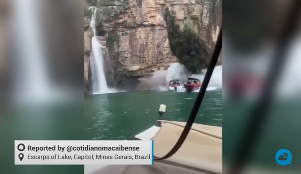 Πελώριο κομμάτι του επιβλητικού όγκου βράχων ξαφνικά αποκολλήθηκε από το φαράγγι και έπεσε πάνω σε σκάφη που έπλεαν στα γαλαζοπράσινα νερά της λίμνης Φούρνας, στην περιοχή Καπιτόλιου, στην πολιτεία Μίνας Ζεράις.