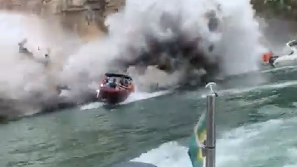 Πελώριο κομμάτι του επιβλητικού όγκου βράχων ξαφνικά αποκολλήθηκε από το φαράγγι κι έπεσε πάνω σε σκάφη που έπλεαν στα πράσινα νερά της λίμνης Φούρνας, στην περιοχή Καπιτόλιου, στην πολιτεία Μίνας Ζεράις.