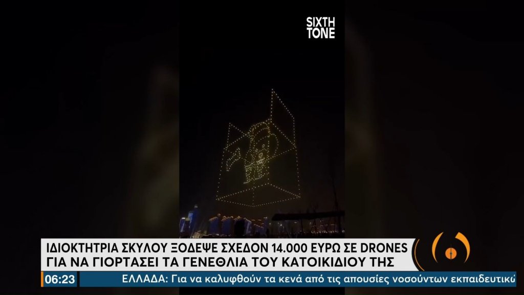 Απίστευτο και όμως αληθινό. Ιδιοκτήτρια σκύλου, με «χοντρό» πορτοφόλι, δαπάνησε 14.000 ευρώ για να νοικιάσει 520 drones προκειμένου να γιορτάσει τα δέκατα γενέθλια του σκύλου της. Το περίεργο αυτό περιστατικό συνέβη στην Κίνα, όπου δυστυχώς η φιλόζωη ιδιοκτήτριά, βρήκε τον μπελά της καθώς δεν είχε εξασφαλίσει την απαραίτητη άδεια. Όσο για το τυχερό σκυλάκι, αυτό μάλλον θα προτιμούσε μια επιπλέον λιχουδιά.