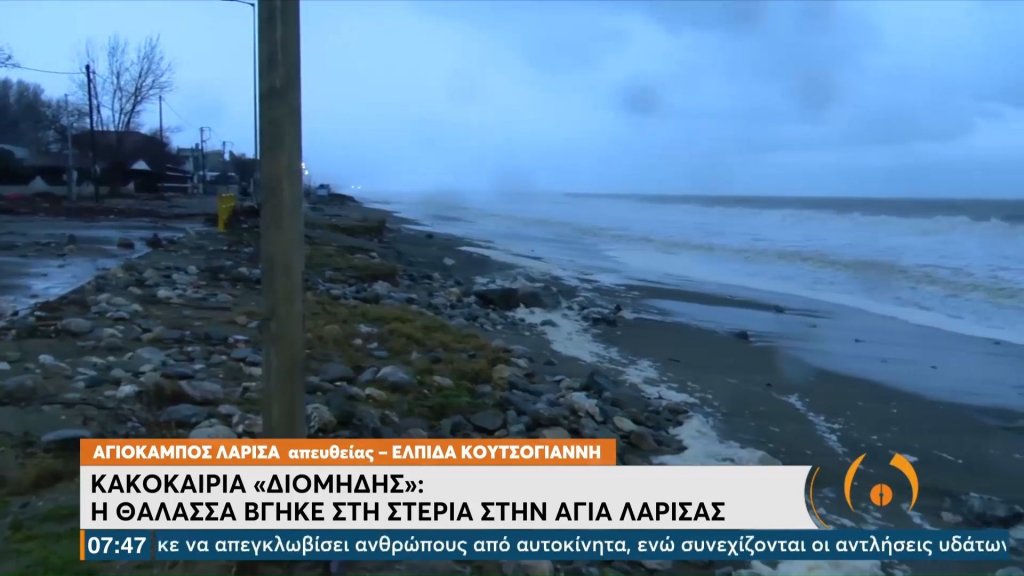 Κακοκαιρία «Διομήδης»: Η θάλασσα βγήκε στη στεριά στην Αγιά Λάρισας (VIDEO)