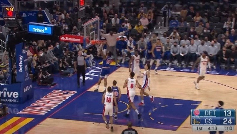 Ο 26χρονος φόργουορντ των Γουόριορς πέρασε τον Κάνινχαμ των Πίστονς και κάρφωσε, εντυπωσιακά, στην κορυφαία φάση των αγώνων που έγιναν τα ξημερώματα