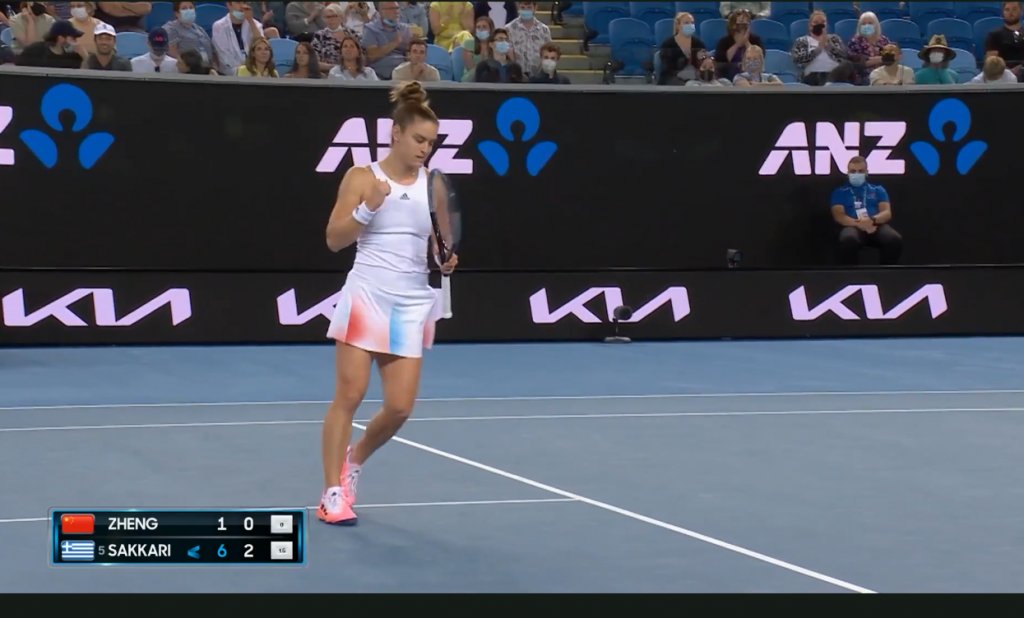 Έχοντας την υποστήριξη Ελλήνων φιλάθλων, στις εξέδρες, η Μαρία Σάκκαρη νίκησε 2-0 σετ την Ζενγκ, εξασφαλίζοντας τη συμμετοχή της, στον τρίτο γύρο του Australian Open, για τέταρτη φορά στην καριέρα της.
