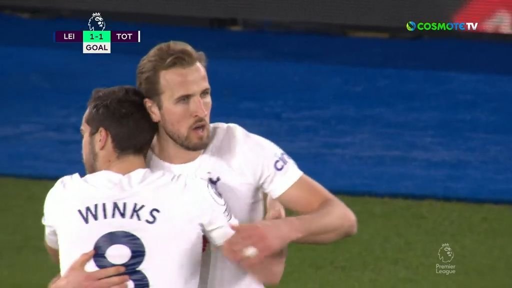Στο 35’ ο Γιορίς είπε όχι σε σουτ του Μάντισον και στο 37’ ο Ολμπράιτον πρόλαβε σωτήρια τον Λούκας. Όμως στο επόμενο λεπτό ο Κέιν μπήκε από δεξιά, άδειασε τον Σογιουντσού και πλάσαρε με το αριστερά για το 1-1. Αυτό ήταν και το 18ο γκολ του Κέιν σε 17 ματς απέναντι στη Λέστερ. Μάλιστα στο 41’ ο Κέιν βρέθηκε μόνος με τον Σμάιχελ αλλά πλάσαρε άστοχα.