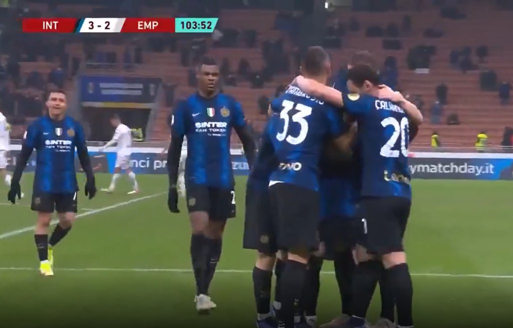 Από του χάρου τα δόντια γλίτωσε η Ίντερ, που κέρδισε την Έμπολι με 3-2 στην παράταση κι ενώ είχε ισοφαρίσει στο 90+1’.