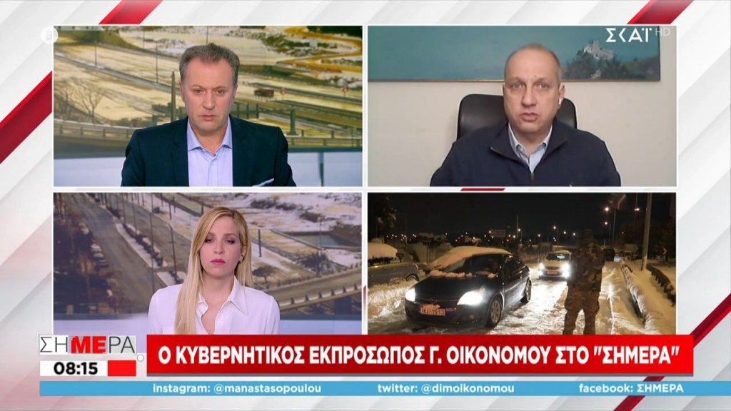 Ο κυβερνητικός εκπρόσωπος, Γιάννης Οικονόμου, προσπάθησε να εξηγήσει γιατί πήγαν όλα στραβά με την αντιμετώπιση της κακοκαιρίας την ώρα που σχεδόν ένα εικοσιτετράωρο μετά πάρα πολλοί οδηγοί παραμένουν εγκλωβισμένοι στην Αττική Οδό.