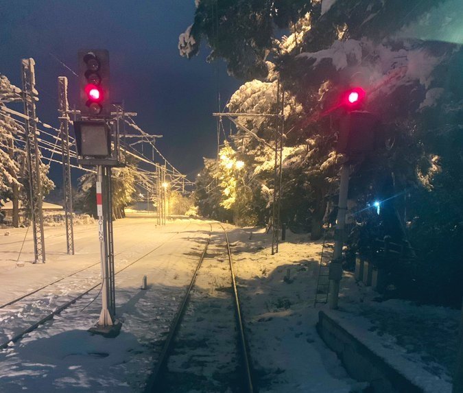Σύμφωνα με το GRTimes η αμαξοστοιχία της γραμμής Αθήνα-Θεσσαλονίκη ακινητοποιήθηκε λόγω του μεγάλου όγκου χιονιού στην Οινόη, από νωρίς το απόγευμα της Δευτέρας, με τους επιβάτες να περιμένουν μέσα στο κρύο και τους εργαζόμενους να εγκλωβίζονται μη μπορώντας να γυρίσουν σπίτια τους.