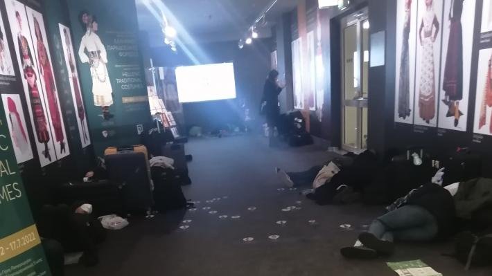Άνθρωποι όλων των ηλικιών- υπολογισμοί κάνουν λόγο για τουλάχιστον 1.000 ανθρώπους- αναγκάστηκαν όλο το βράδυ της Δευτέρας να κοιμηθούν σε καρέκλες και στο πάτωμα καθώς δεν υπήρξε καμία μέριμνα για τον απεγκλωβισμό τους. Μάλιστα, σύμφωνα με μαρτυρίες τους έδωσαν ένα κουπόνι δέκα ευρώ για φαγητό και τίποτα περισσότερο.