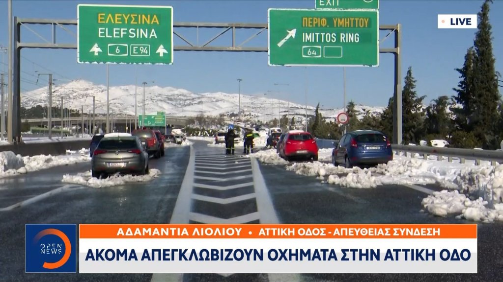 Ακόμα απεγκλωβίζουν οχήματα στην Αττική οδό (VIDEO)