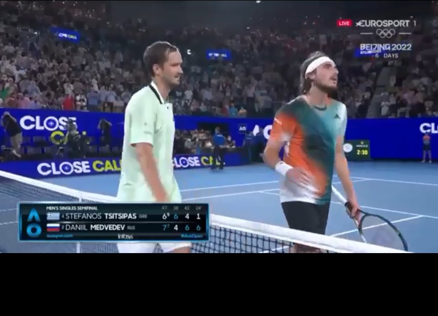 Δυο μήνες μετά την επέμβασή του, στον αγώνα, ο Στέφανος Τσιτσιπάς κατέβαλε μεγάλη προσπάθεια, στον ημιτελικό του Australian Open, αλλά στο τέλος λύγισε. Μετά από 2.5 ώρες αγώνα, ο Ντανίλ Μεντβέντεφ επικράτησε 3-1 σετ και προκρίθηκε στον τελικό, όπου θα αντιμετωπίσει τον Ράφα Ναδάλ.