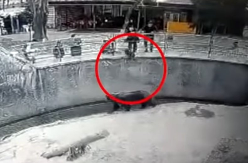 Στο βίντεο που ήρθε σήμερα στη δημοσιότητα από εκείνες τις στιγμές, φαίνεται η γυναίκα να ρίχνει το κοριτσάκι και να το κοιτάζει στη συνέχεια ατάραχη στο κλουβί με την αρκούδα.
