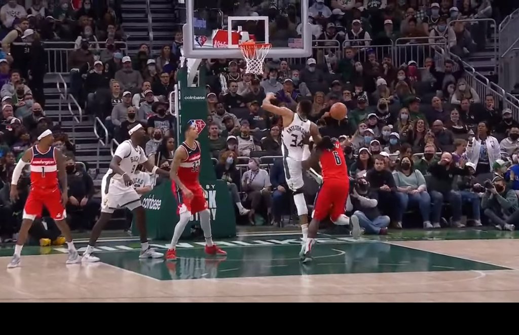Έξι λεπτά πριν το φινάλε, στο Μιλγουόκι Μπακς-Ουάσινγκτον Γουίζαρντς, ο Γιάννης Αντετοκούνμπο όρμησε, στην αφύλαχτη μπασκέτα, για κάρφωμα, όταν ο Μοντρέζλ Χάρελ τον σταμάτησε, ρίχνοντάς τον στο παρκέ, με σκληρό φάουλ.