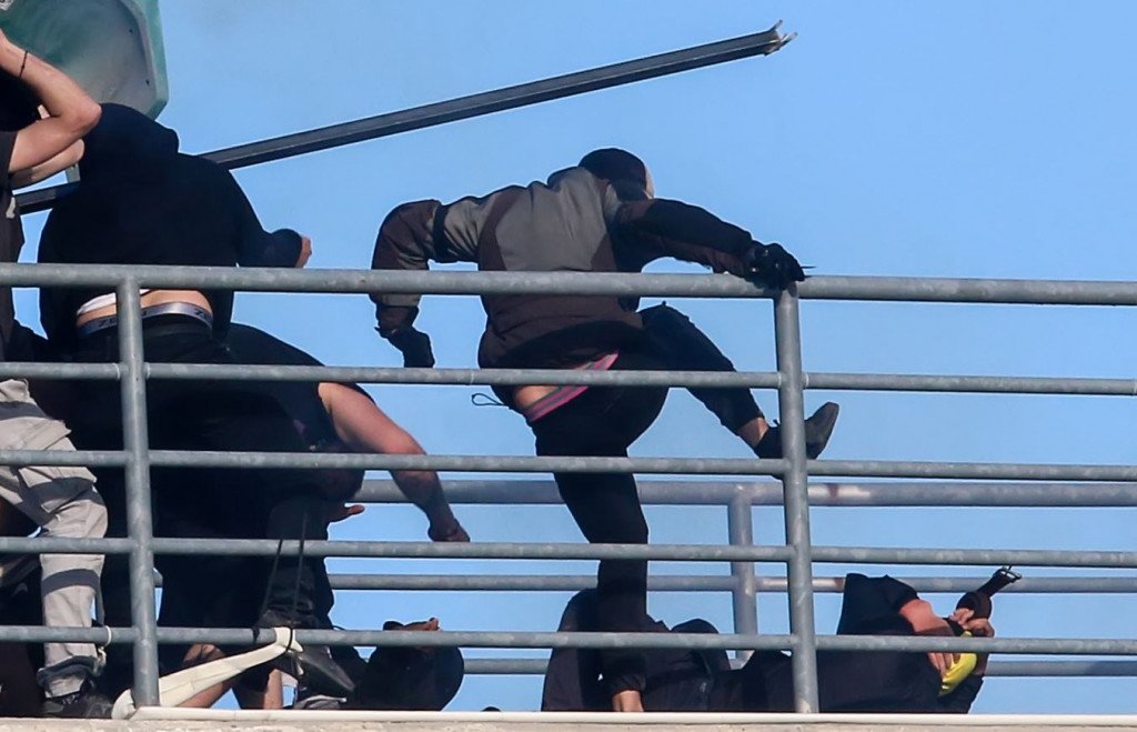 Η συγκεκριμένη φωτογραφία είναι από τα επεισόδια στην πεζογέφυρα του Πανθεσσαλικού Σταδίου, λίγες ώρες πριν από την έναρξη του τελικού.