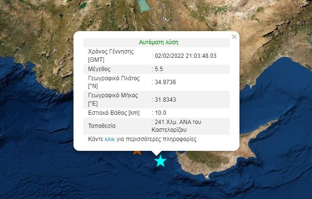 Σεισμός 5,5 Ρίχτερ σημειώθηκε στην Κύπρο σύμφωνα με το Γεωδυναμικό Ινστιτούτο.